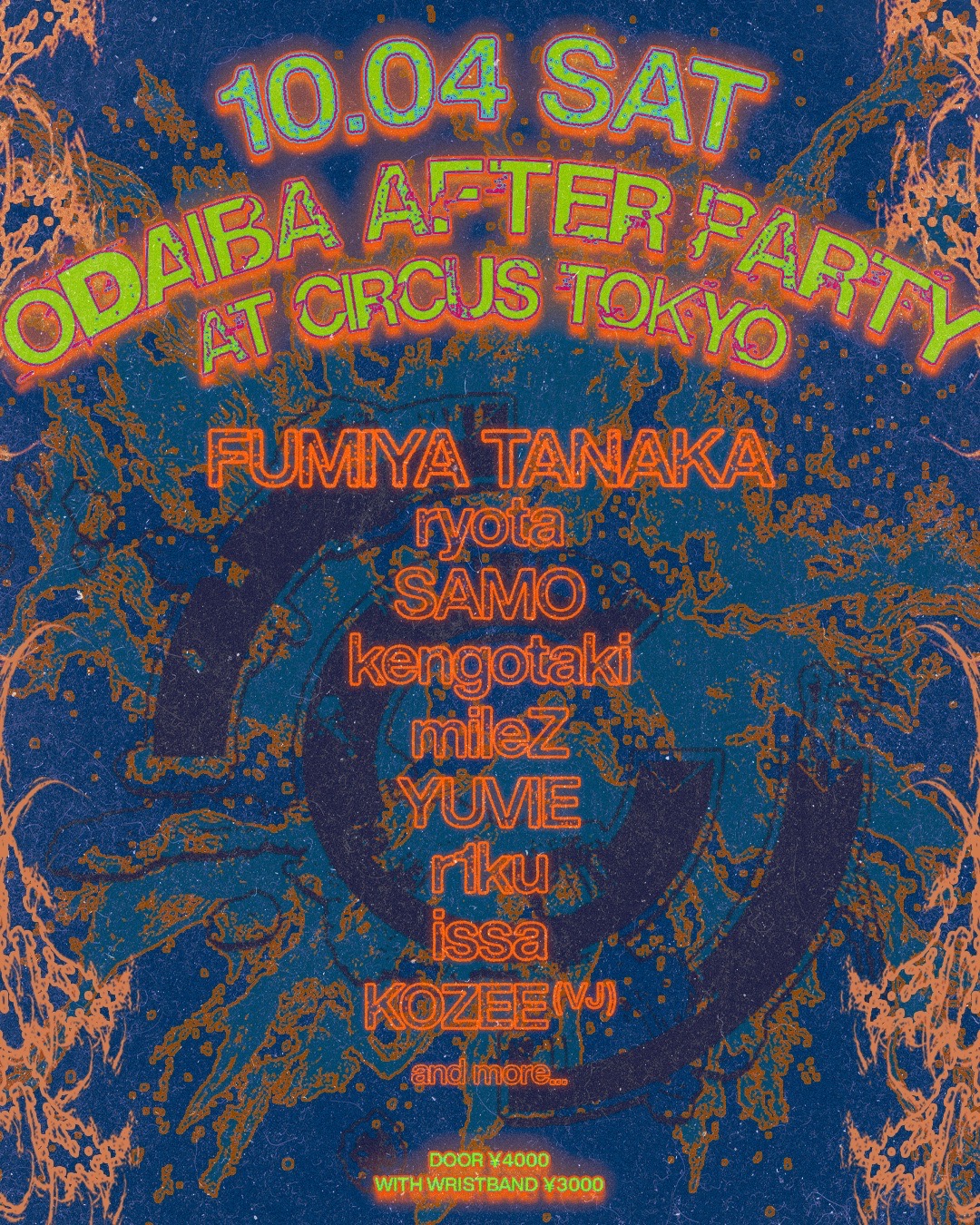 10/4 お台場青海地区P区画 お台場野外特設会場で開催するCIRCUS Tokyoの10周年を記念するアニバーサリーイベントのフルラインナップが公開。 第一弾ラインナップで発表したTohji, SKIN ON SKIN, underscoresに加え、国内外のダンスミュージックシーンを賑やかす、強力なアーティスト陣が集結する。 – TITLE:CIRCUS -CIRCUS Tokyo 10th anniversary- DATE:2025 / 10 / 4 (SAT) OPEN/START:10:00 CLOSE:21:00 LINE UP:(A-Z) FUMIYA TANAKA HEAVEN Iglooghost lilbesh ramko okadada PAS TASTA -DJ SET- Peterparker69 DJ Q Qrion ralph ryota SAMO DJ SEINFELD SKIN ON SKIN SOICHI TERADA Tohji underscores Vegyn Beginning ENSITE FULLHOUSE RIP VENUE:お台場青海地区P区画 〒135-0064 東京都江東区青海1-1-16 最寄駅: ゆりかもめ / 台場駅 ゆりかもめ / 東京国際クルーズターミナル駅 りんかい線/東京テレポート駅 前売り券:¥9,000 ※入場時、別途1ドリンク代(¥800)を頂戴いたします。 チケットプレイガイド: ぴあ https://t.pia.jp/pia/event/event.do?eventCd=2528328 ※雨天決行・荒天中止 【チケットに関する注意事項】 ・本券は1名様のみ有効です。 ・再入場の可否は後日公式SNS・HPにてご案内いたします。 ・出演者の変更・キャンセルによる払い戻しは行いません。 ・会場内の映像・写真が公開・使用される場合があります。あらかじめご了承ください。 ・チケットの再発行はできません。紛失・破損にご注意ください。 ・チケットの転売・譲渡は禁止です。発覚した場合は入場をお断りいたします。 【開催に関する注意事項】 ・屋外開催のため、雨具・防寒具・熱中症対策を各自ご用意ください。 ・ゴミは必ず指定の分別回収場所へ。持ち帰りのご協力をお願いします。 ・会場内外で発生した事故・盗難・怪我等に関して主催者は責任を負いかねます。 ・ペット同伴での入場はできません(介助犬・盲導犬は除く)。 ・喫煙は所定のエリアにてお願いいたします。 【未成年者のご来場について】 ・小学生以下の入場はできません。 ・中学生は保護者同伴に限り入場可能です。 ・中学生以上はチケットが必要です。 ・飲酒・喫煙は法律で禁止されています。違反行為が確認された場合は即時退場いただきます。
