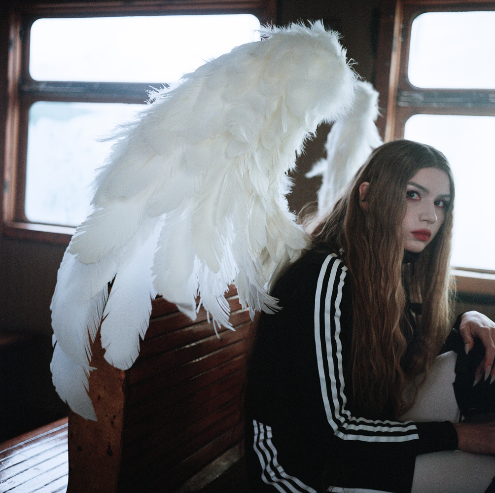 Anastasia:もし聴覚か視覚のどちらかを失うとしたら――私は視覚を選びます。でも、物語を伝える上で映像、歌詞、音は同じくらい重要です。今回は「天使」というアーキタイプにこだわりました。天使は常に現実と非現実の間に留まります。人の目には見えませんが、時には人間の姿で現れることもあります。子どもの頃に観た映画『Lilja 4-ever』* から間接的に影響を受けました。それは深く私を傷つけ、無意識の中に深く刻まれました。見捨てられた子どもたちが、耐えがたい現実に取り残される物語です。それは私自身の感覚でもあります。アルバムのジャケットでは、私たちは家に近づく天使として描かれています。