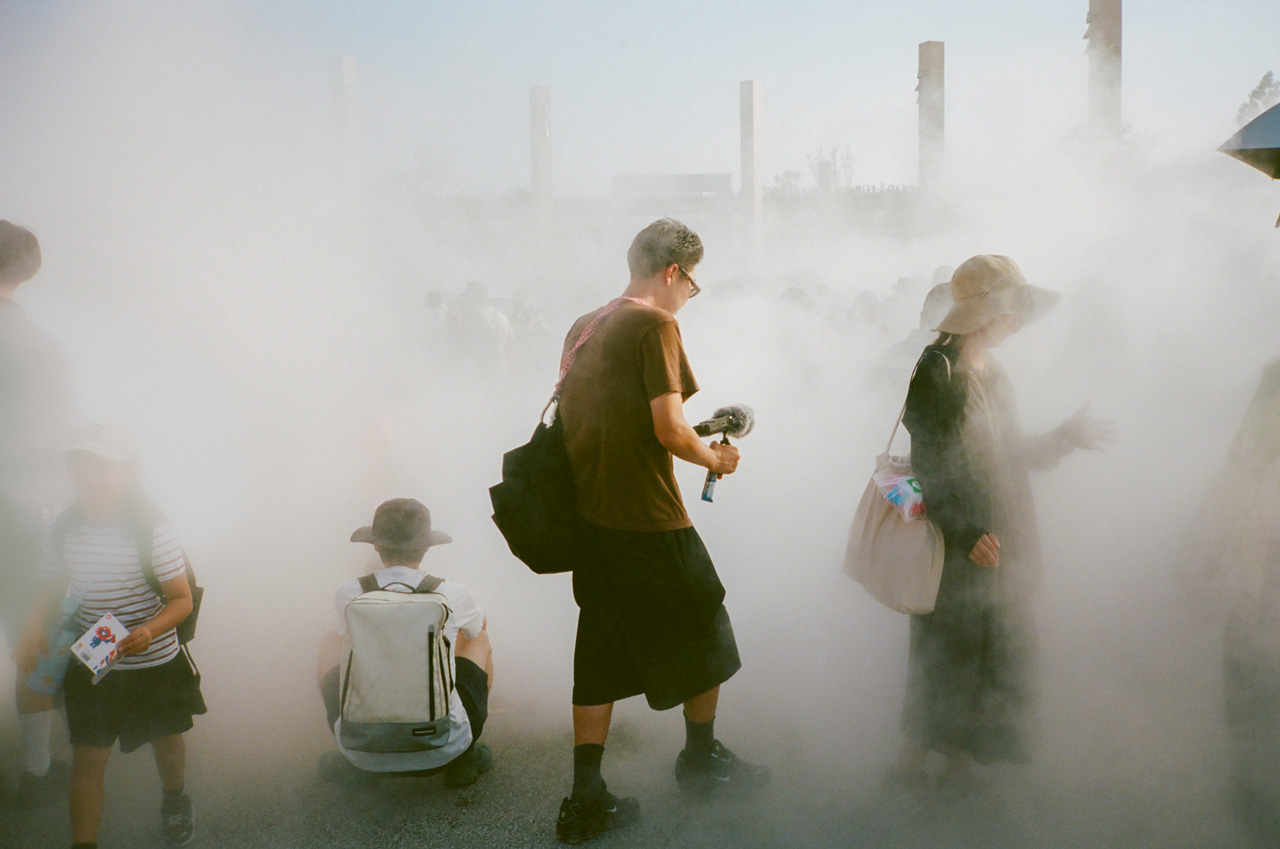 更新され続ける猛暑、身体に染みついた新自由主義、福島の発電所が放つノイズ、雨の中でゆらぐ正弦波。『Pressure Field』は、圧力変化の個人的な備忘録であり、その音響的な軌跡。篠田ミルはこれまで、コロナ禍のライブハウス・クラブカルチャーを守るムーブメント『#SaveOurSpace』や、 クラブカルチャーに根ざしたサウンドデモ『プロテストレイヴ』を企画するなど、政治的アクションにも深く関わってきた。また、2024年には相模原市藤野の自然環境を舞台とした野外イベント『by this river』を開催し、自然環境の中で音楽と観客が一体化するような実験的空間を創り上げた。2025年には、被災地支援を行うbeatfic experimentとのコラボレーションのもと、福島県で開催された『rural 2025』にて、「被災の記憶に耳を澄ますこと」を主題に、ポータブルラジオを使ったサウンドパフォーマンス”Tuning for Pray”を初演。さらに、音楽家・原摩利彦の声がけのもと、パレスチナ ガザでレコーディングした音を元にした楽曲の購買で支援に繋げる、『THEY ARE HERE』プロジェクトへ共同発起人とし て参加している。こうした実践に共通するのは、「音と場」の関係性を通じて、社会に対する聴覚的な応答を試みる姿勢である、とのこと。