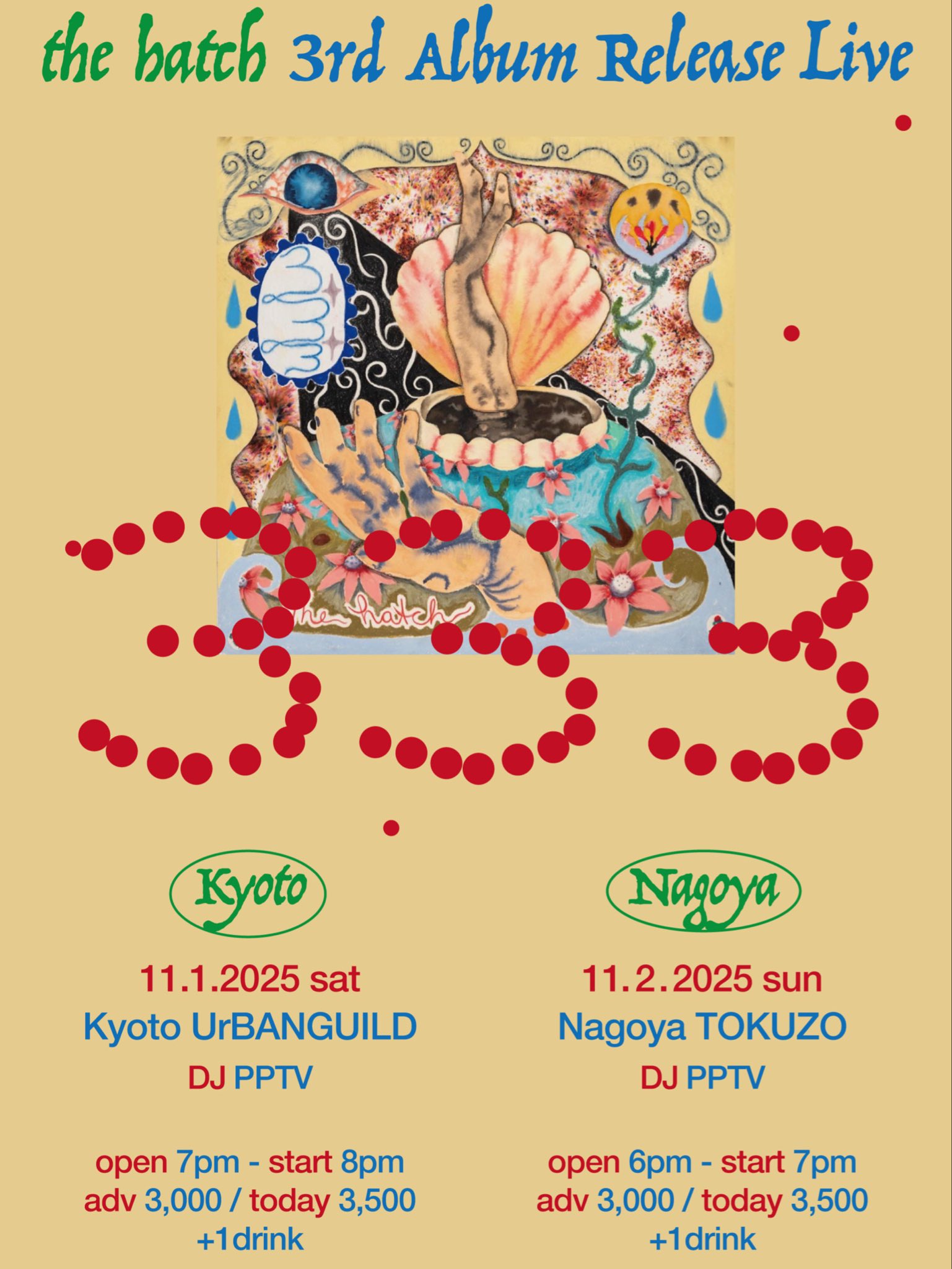 また、the hatchは3rdアルバムのリリースを記念して11月1日(土)に京都(UrBANGUILD、11月2日(日)に名古屋・得三でワンマンライブを開催。チケット予約はthe hatch公式STORESより。