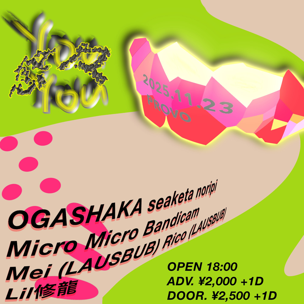 12/22 高円寺knock 今年2月に幡ヶ谷Forestlimitにて開催された柴田(パソコン音楽クラブ)、noripi、seaketaによるイベント〈悠々〉。その第二回目が高円寺knockにて12月22日に開催。悠々によるミニクリスマスパーティーが行われる。 主催の柴田、noripi、seaketaに加えて、にゃにゃんがプー、L?K?O、トマトざえもん(回転音楽)が出演。フライヤーはnoripiが手掛けた。 – 悠々 2024年12月22日(sun) OPEN/START 18:00~ at knock koenji ¥2000 +1drink LIVE にゃにゃんがプー seaketa DJ L?K?O トマトざえもん(回転音楽) noripi Micro Micro Bandicam FLYER noripi 予約https://docs.google.com/forms/d/e/1FAIpQLSfNQyzb4hlRoDkKa_1AqGPkf3h3YXYwKl8nj4ETYH5T2FBfUQ/viewform