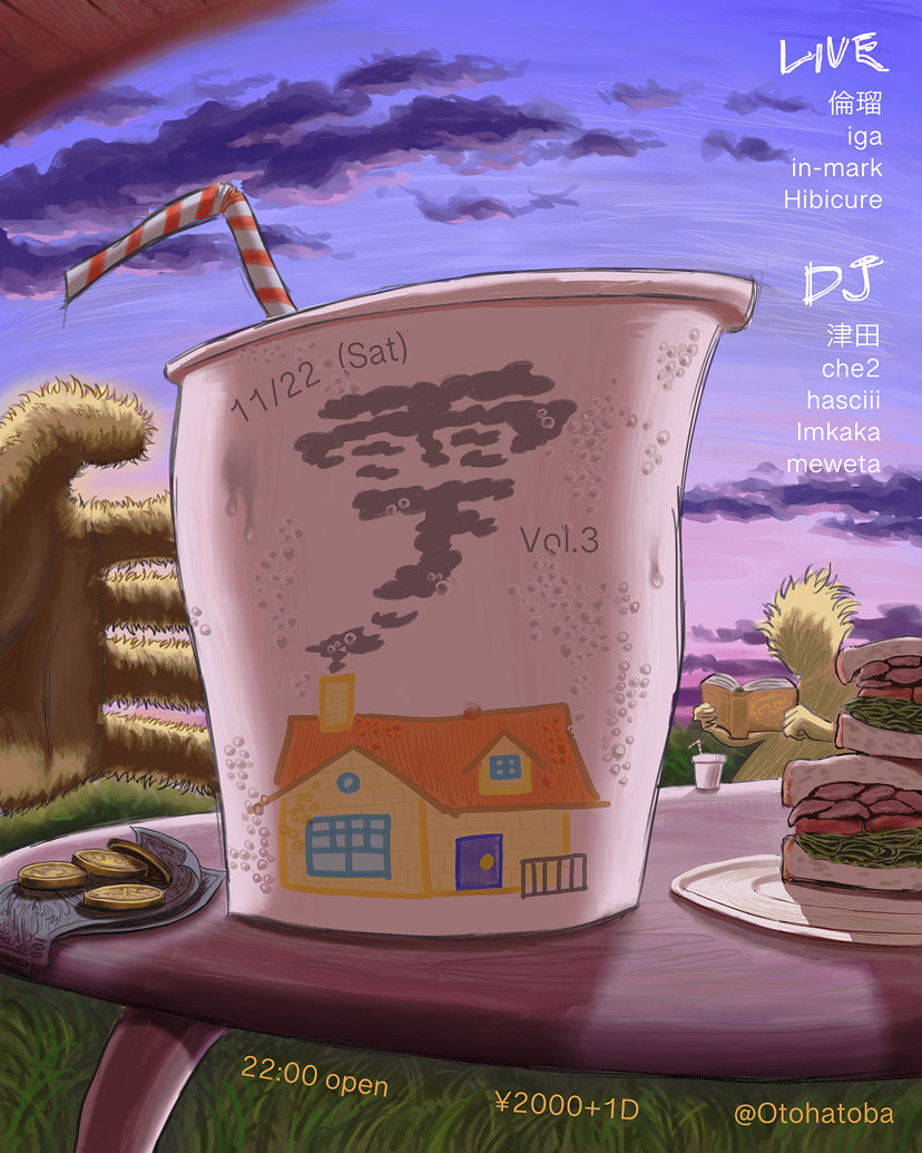 関西を拠点に〈aquarium〉や〈Vo〉といったパーティを手がけるkarisoによるパーティ〈雫〉の第3回目が2025年11月22日(土)の深夜に神戸Otohatobaで開催。フライヤーはイラストレーターのSAが飲み物の結露をモチーフに手がけた。