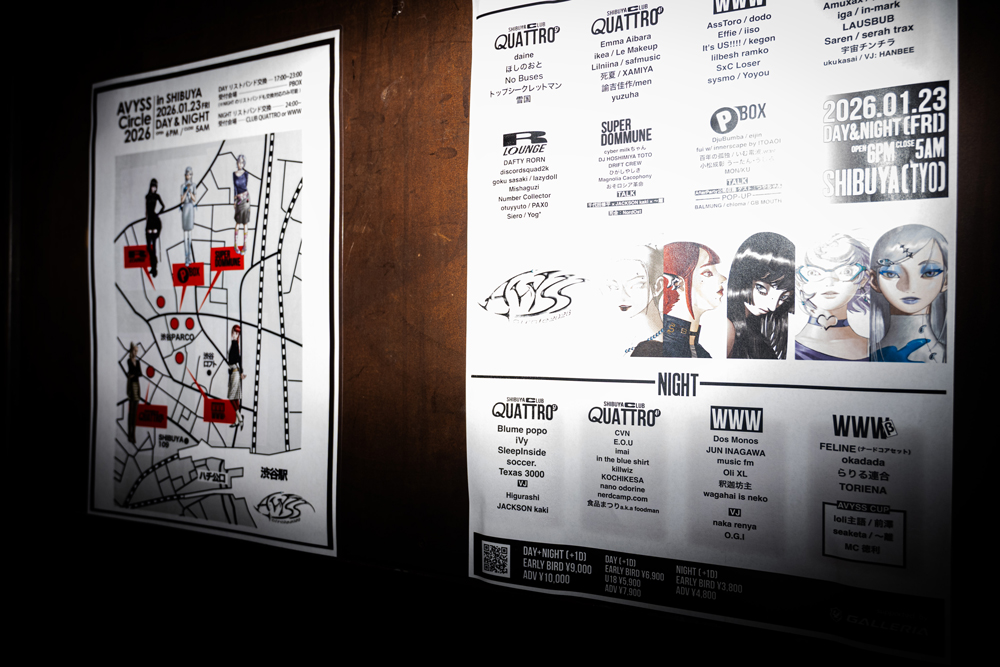 AVYSS Circleは2026年1月23日、下北沢から渋谷へと舞台を移し、5会場7フロア(CLUB QUATTRO 4F・5F / WWW・WWWβ / R Lounge / SUPER DOMMUNE / PBOX)を使用して開催された。