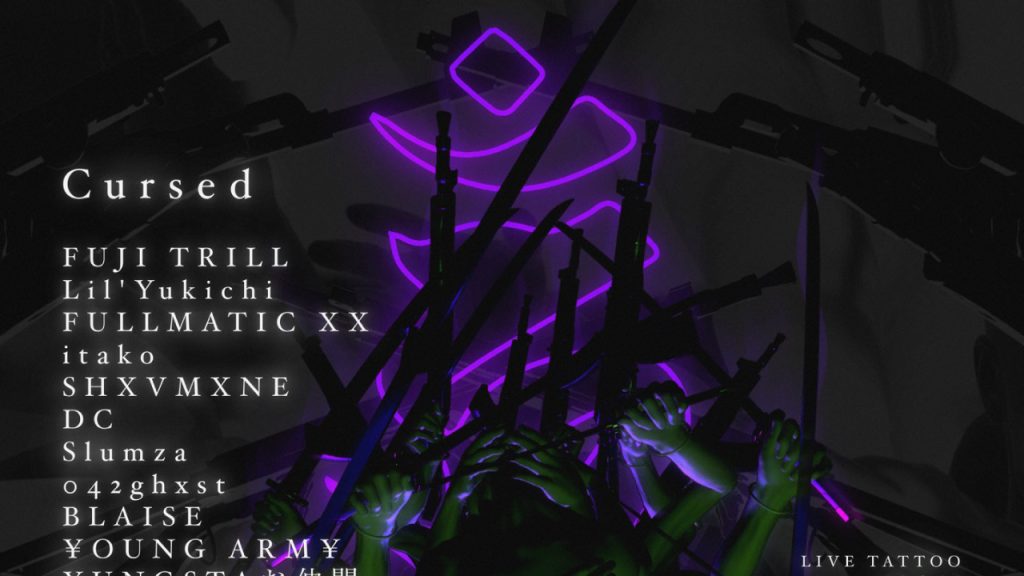 Playa’s Infernal Ritual 失神不可避 日本でPhonkパンデミックを起こす《軍荼利》、今回はNevalOneがキュレートする《EXODUS》 とclubasiaにて悪夢の再現を行う。 DOOMSHOP RECORDSからCursedが来日決定。FUJI TRILL、Lil’Yukichi、FULLMATIC XXなど808クリーチャーズがフロアを絶望に陥れる。 Playa’s Infernal Ritual 失神不可避── GUNDARI × EXODUS 2025.10.29 wed clubasia OPEN 23:00 * adv ¥2,500+1D / * door ¥3,500+1D Ticket : https://cultureofasia.zaiko.io/item/375630 * LINEUP Cursed FUJI TRILL Lil’Yukichi FULLMATIC XX itako SHXVMXNE DC Slumza 042ghxst BLAISE ¥OUNG ARM¥ YUNGSTAお仲間 +Secret Guest DJ KOTARO BLKX9FX99Y Ogdoad Beenie Pimp misa nakamura KUROMAKU G4CH4 Jellyf!sh * LIVE TATTOO 羅十羅 KID TATTOOER * LIVE PAINT みなみぱりす NAOHIRO YOSHIDA