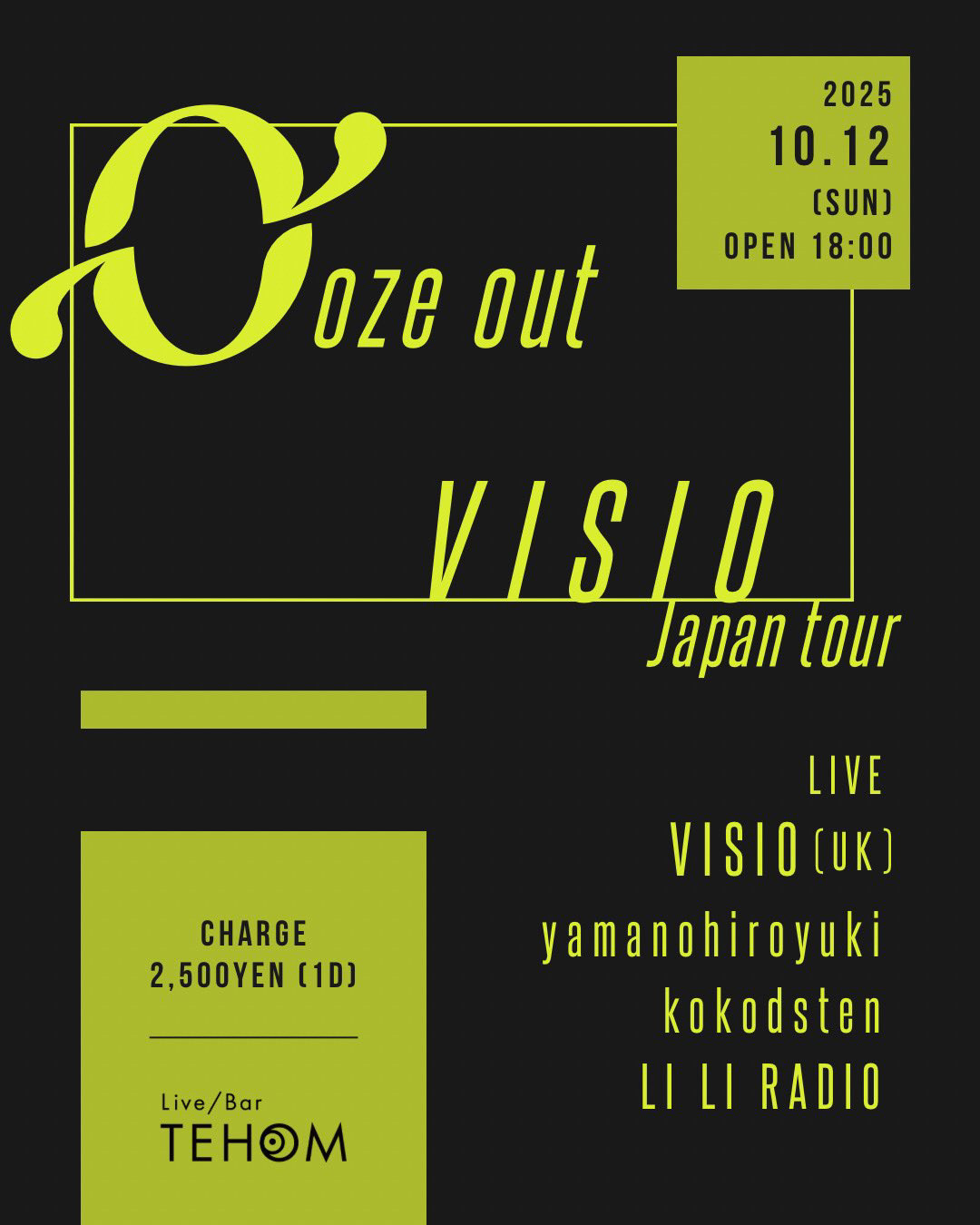 ロンドンを拠点に活動する音楽家/映像作家/ 美術家のVISIO(Nicola Tirabasso)の初来日ツアーを開催。名古屋・東京・浜松・京都の4都市にて行われる。