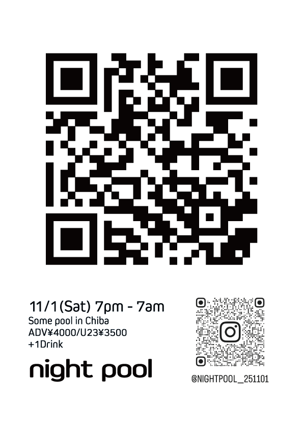 11/1(Sat) 7pm – 7am at Some pool in Chiba