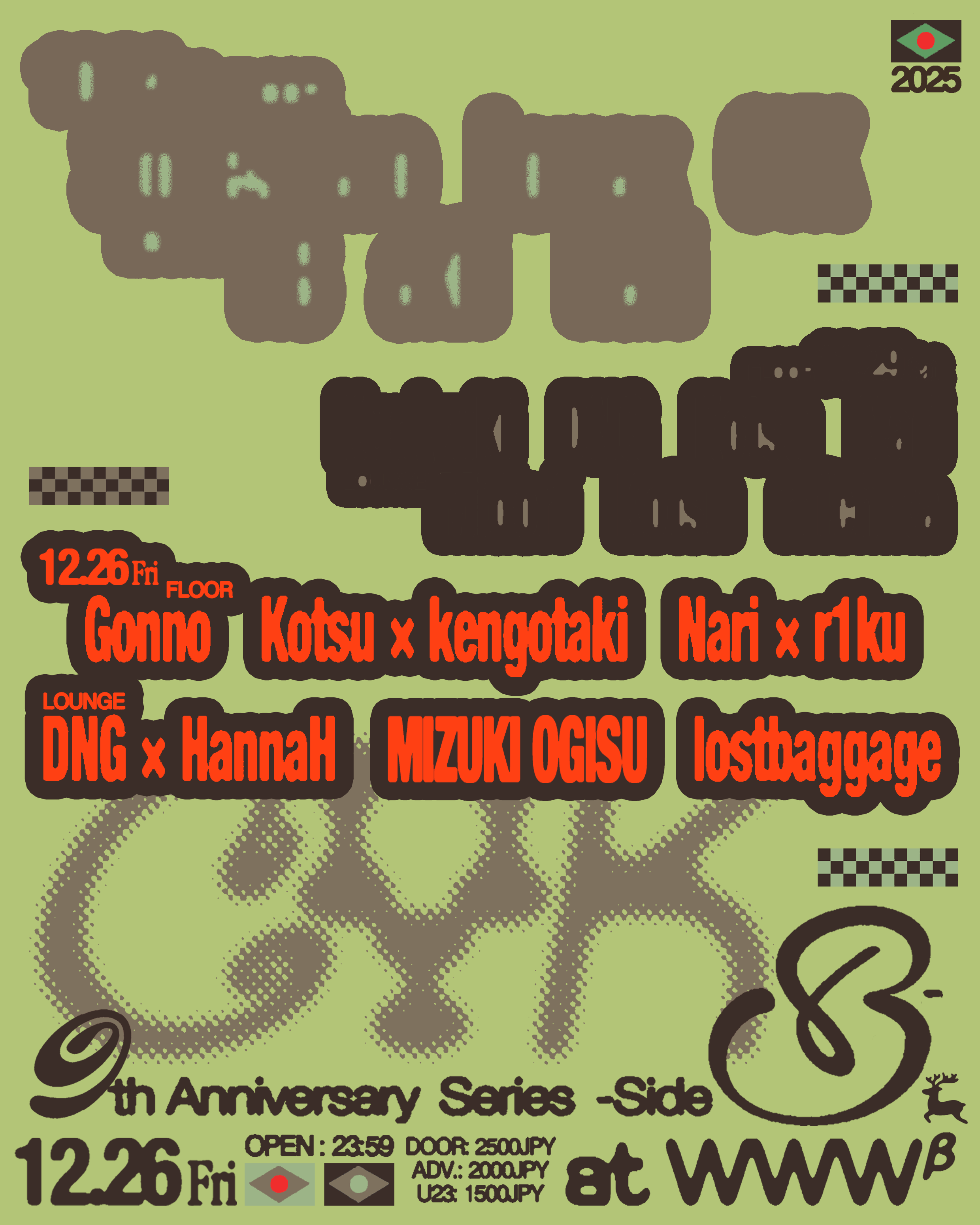 ここまで本文を読んでくれた熱心なクラバーであるあなたが、もしレコードを手に取ったことがあるならば。添えられるように収録されたB面の良さに時を経てから気づき、高揚する、そんな経験はないだろうか。今回のサブタイトル”Side β”は、そういった出来事とWWWβに因んでいる。今回のパーティー・シリーズが、9年という時を重ねたCYKのアニバーサリーに際して、あるいは東京クラブシーンのオルタナティブ・スペースWWWβに触れる中で、改めて純粋なハウス・ミュージックの高揚と感動に触れる機会となることを、切に願っている。