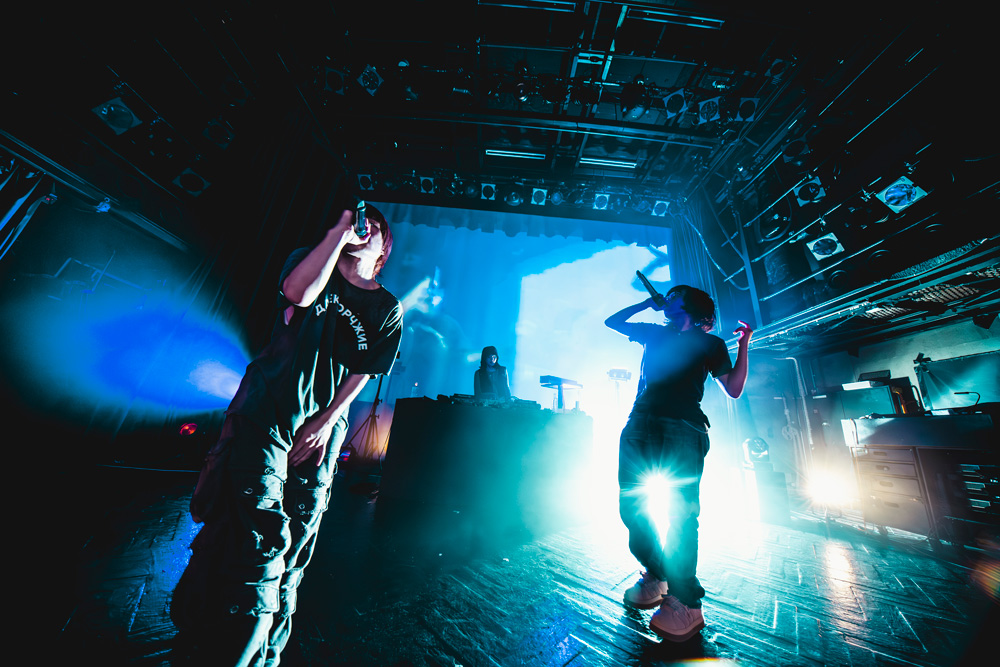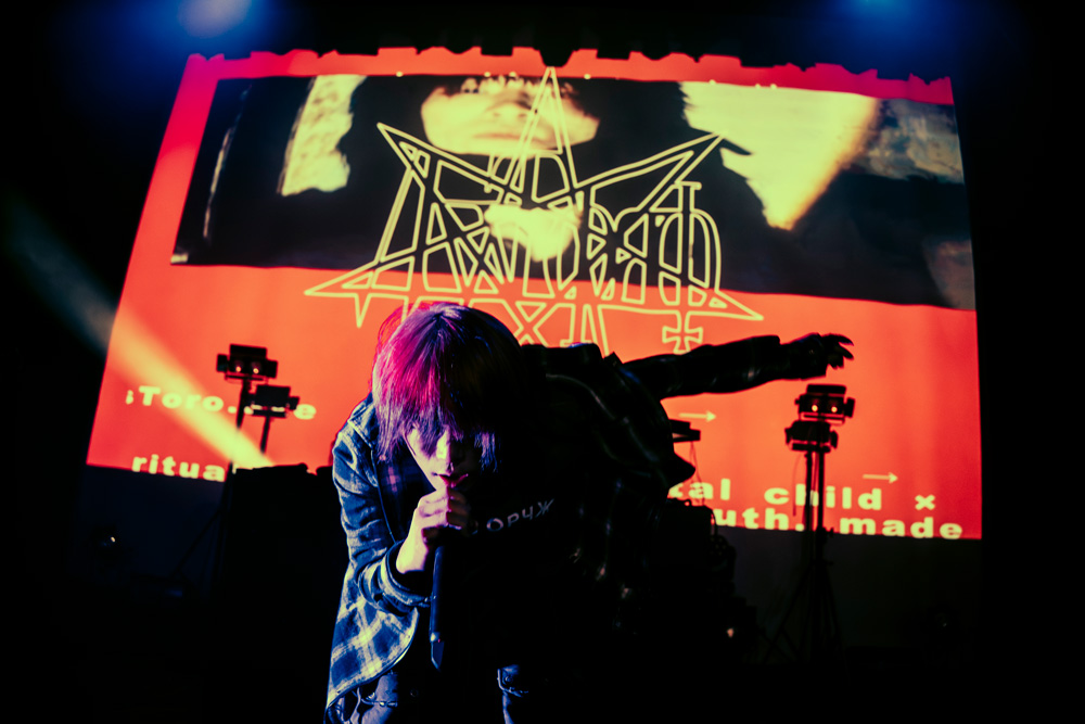 それに対し、AssToroは「cesium(えい)」「dusk」「blacklist」と最新作、過去作から幅広いスタイルの楽曲が立て続けに披露し、かと思えば「extasy」「key」のメロウな2曲でハイエナジーな雰囲気が一点、ダウナーでメロウな陶酔感を演出。ファンの感情を巧みに揺さぶってみせた。演出も出色の出来で、VJを担当したJACKSON kakiの手腕が光る。ネットミームの毒気とゴシックな妖艶さを巧みに融和させるアプローチでAssToro固有の世界観を見事に補強していた。