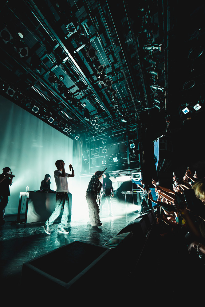第3パートに差し掛かるMCではAssToroの足跡のなかで重要なコレクティブ・trash angelsやtmjclubへの言及があり、盟友のlazydoll、okudakunが登場。ドリルをメロディックに再解釈したアンセム「ovrcast//mirror」が披露され、その後はlazydollのソロ曲「thoughts」、okudakunのソロ曲「檸檬」へと移行、AssToroは一時姿をくらます。ワンマンでありながらソロステージをふたりに披露してもらう、という構成からも、上述したふたつのコレクティブがいかに彼にとって大切かが伝わる。
