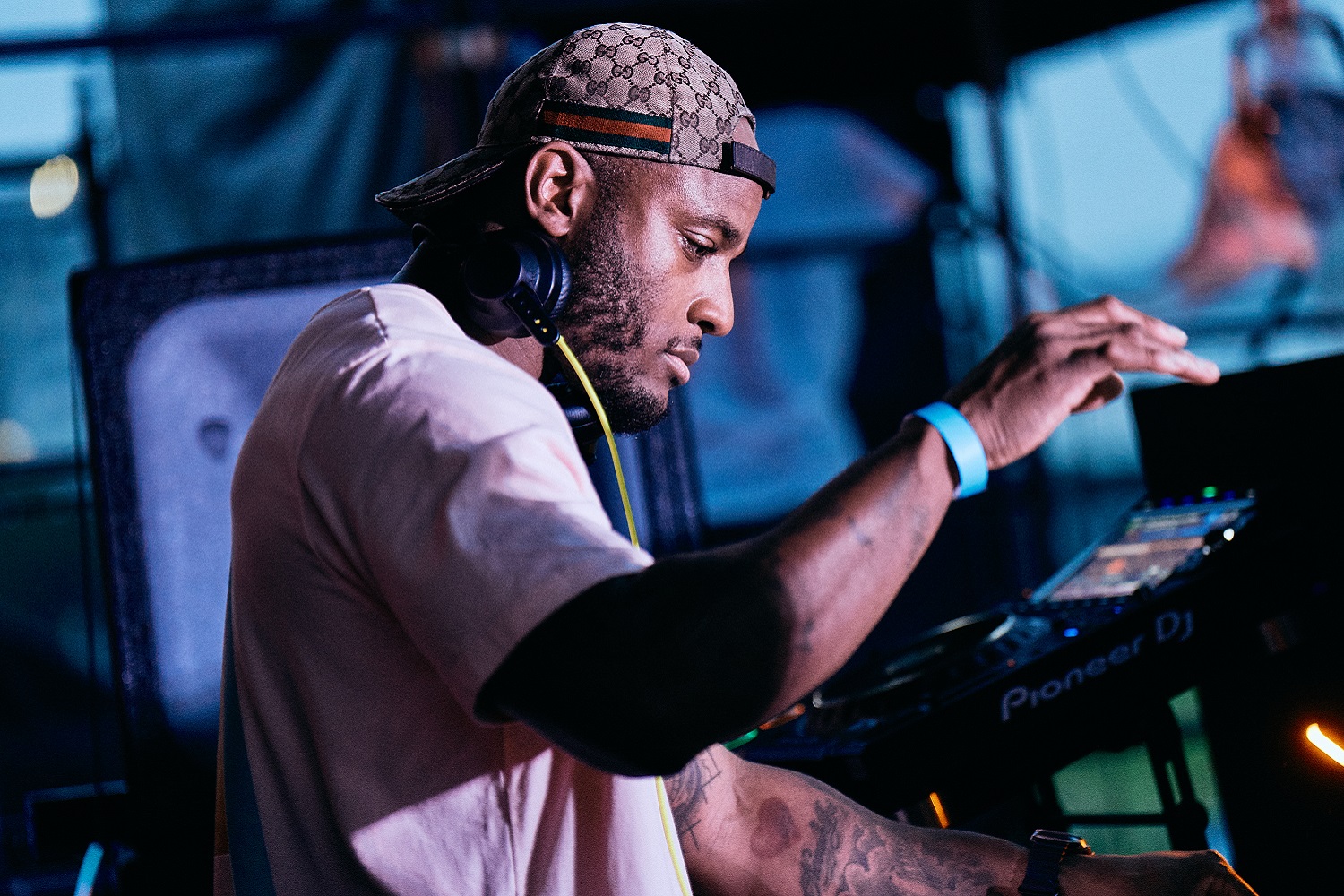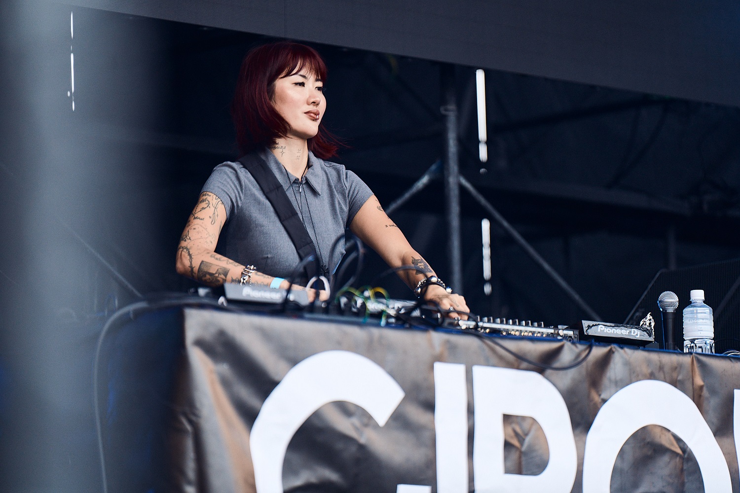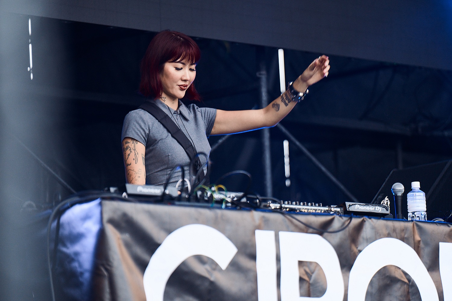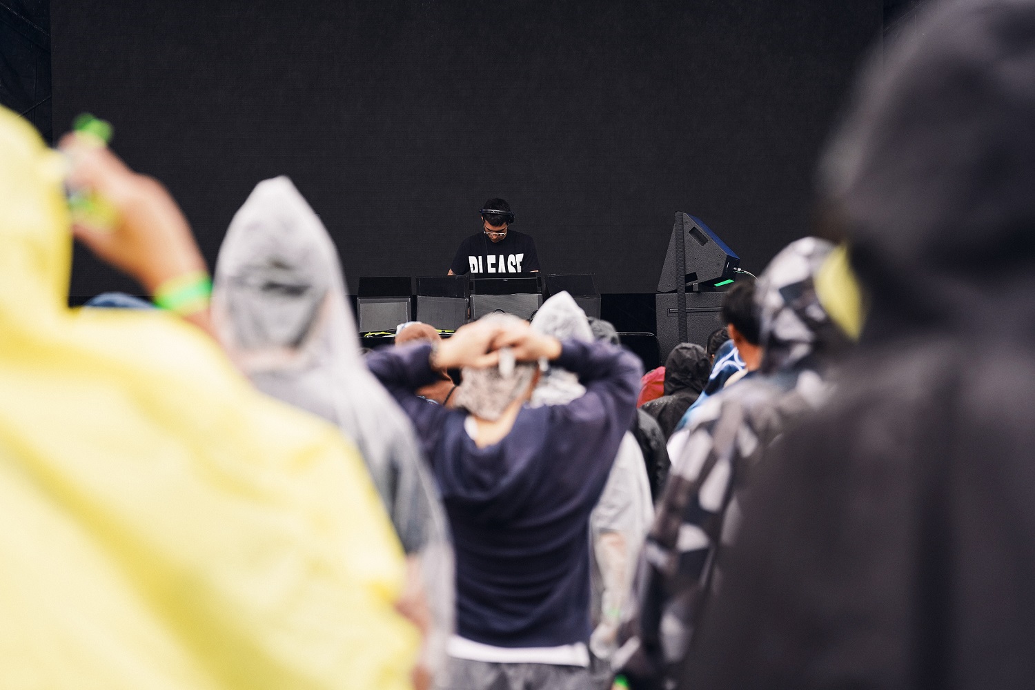 しかしプレイが進むとその顔つきはクールに。アップリフティングな雰囲気のハウスを軸に、四つ打ちのリズムを徐々に横展開してグラデーションのように展開をつけてフロアを彩っていく。自身のグッズTシャツにプリントされた「PLEASE」の文字も意味深だ。
