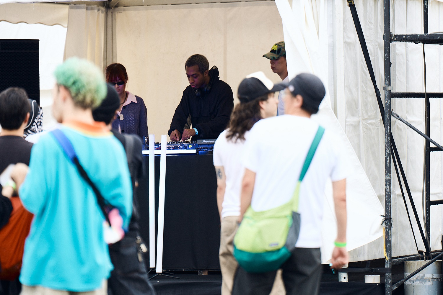 そんなニーズをこれでもかと掴んで畳み掛けるようなDJ Qのプレイングはまさに圧倒的だった。UKダンス・ミュージックのテクニカルな部分をトップレベルの技量でこれでもかと放出する景気の良さに、立ち寄った人々は釘付け。筆者もそのひとりで、ほかにも行きたいフロアがあるのに離れられず、気づけば小一時間が過ぎていた。