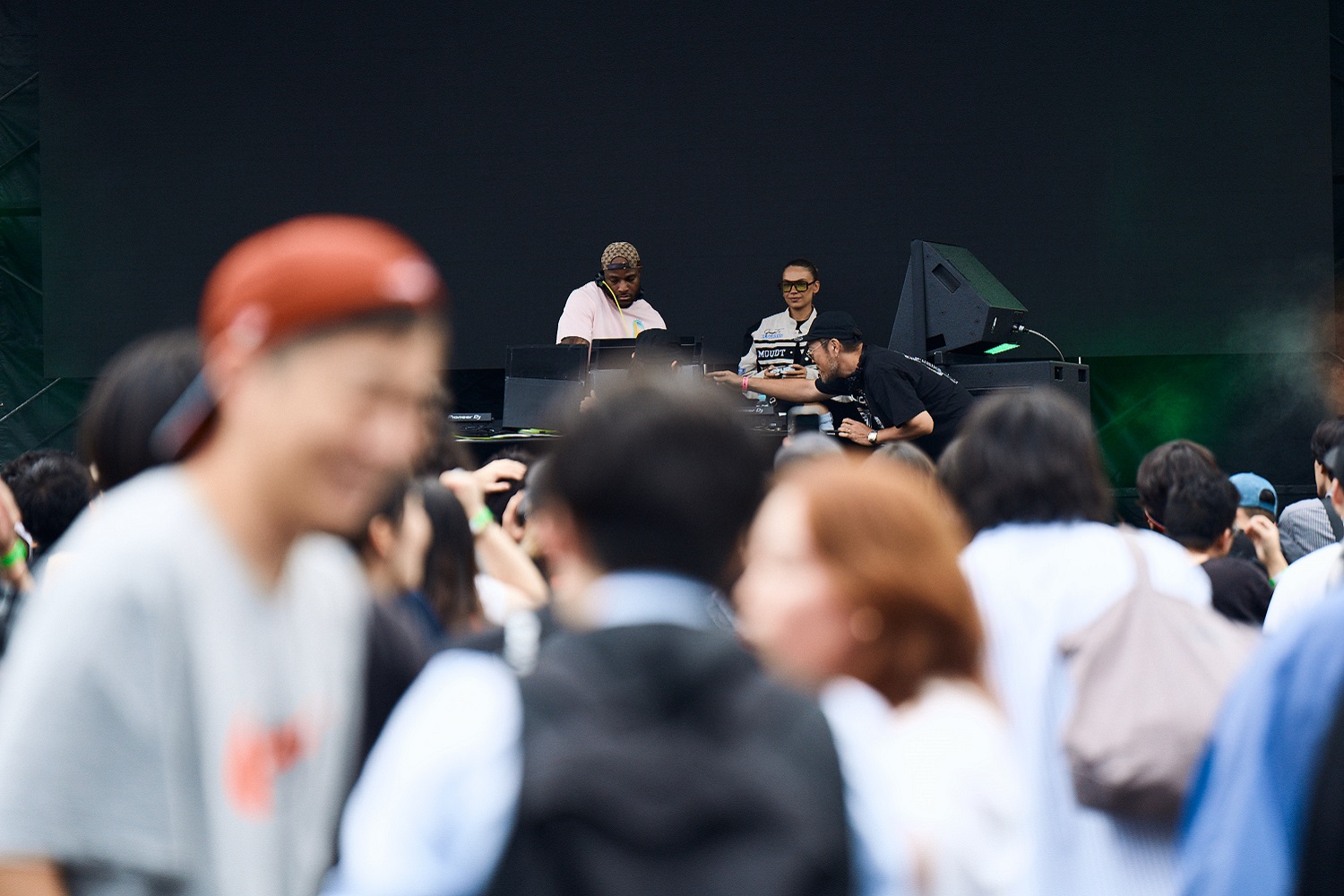 後続のDJ Seinfeldとお互いを称え合い、ステージを去っていく。どんな現場であったとしても、前後のアーティストとのこうした交流を目にするたびに胸が熱くなる。余談ではあるけれど、なんと今回の来日タイミングは誕生日と重なっていたらしく、出番を終えた彼女が家族や友人と仲睦まじく過ごしている様子も遠目に見えた。無機質な空間で築かれたフェスだからこそ、アーティストの人間的な温かみがビビッドに映るのかもしれない。