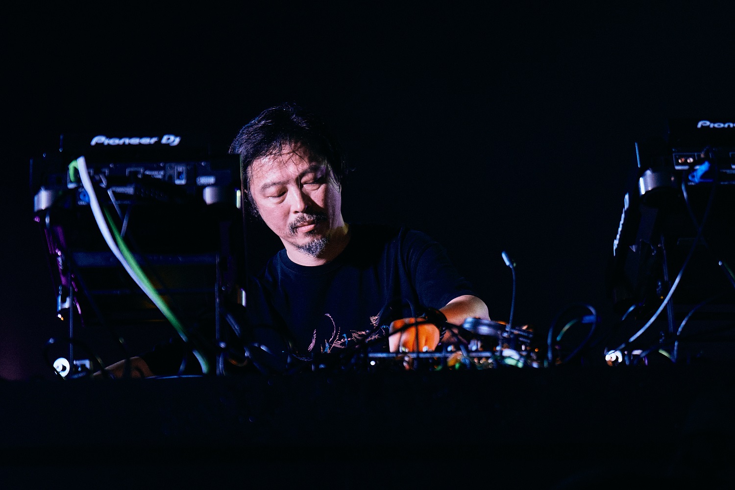 ちなみに後で話をうかがったところ、okadada氏は前日に出演していた代官山ORD.のパーティー(Skaai × KM “Podium” RELEASE PARTY)から直行してそのまま2時間セットへなだれ込んだとのこと。鉄人の背中は今日も頼もしかった。