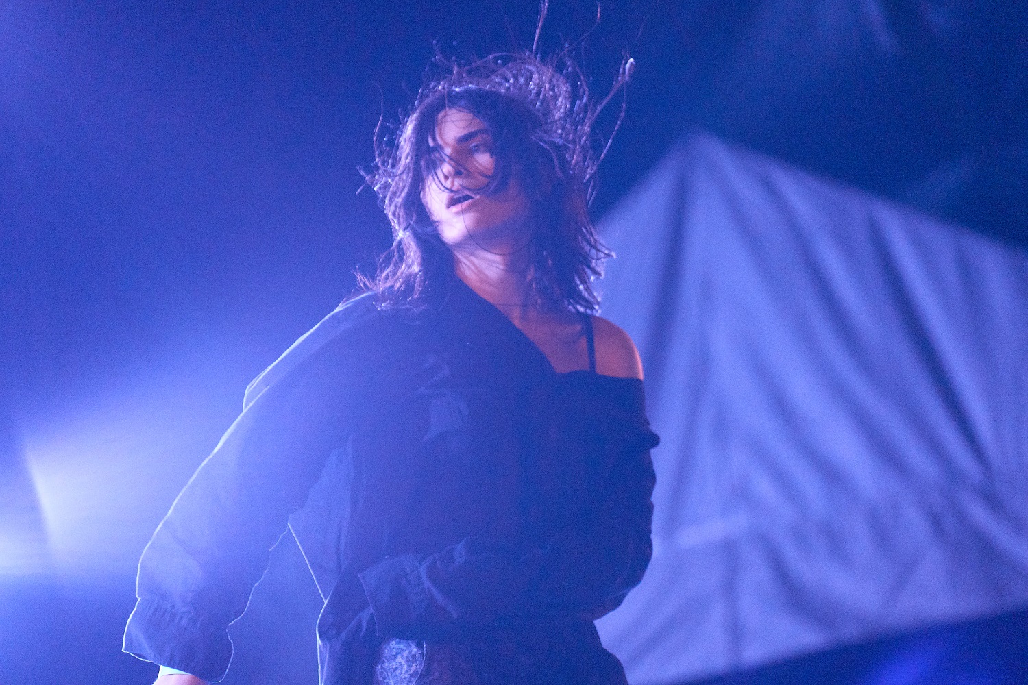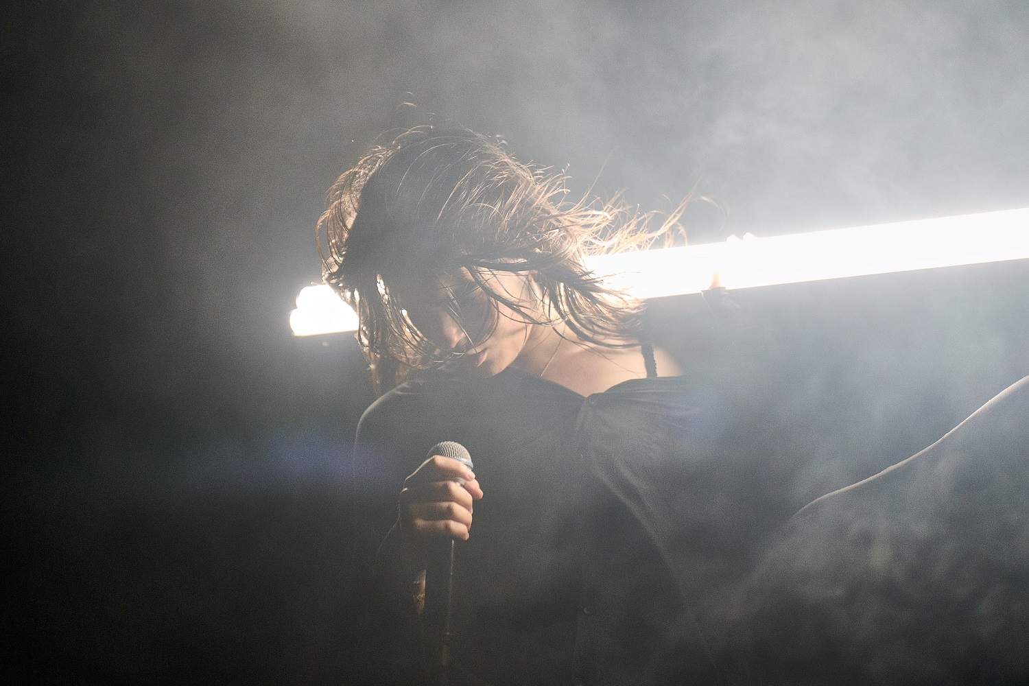 ライブが進むにつれ、underscoresはLEDライトの柱を刀のように抱えたり、ステージに横たわったり、キャリーケースを手に取ったりと多彩な演出を繰り広げていく。11月現在客演で参加したDanny Brownの新作『Stardust』に伴うツアーに帯同している彼女は、いまも長旅を続けているということだろうか。まだ全容が明かされていない次作のヒントなのか、果たして?