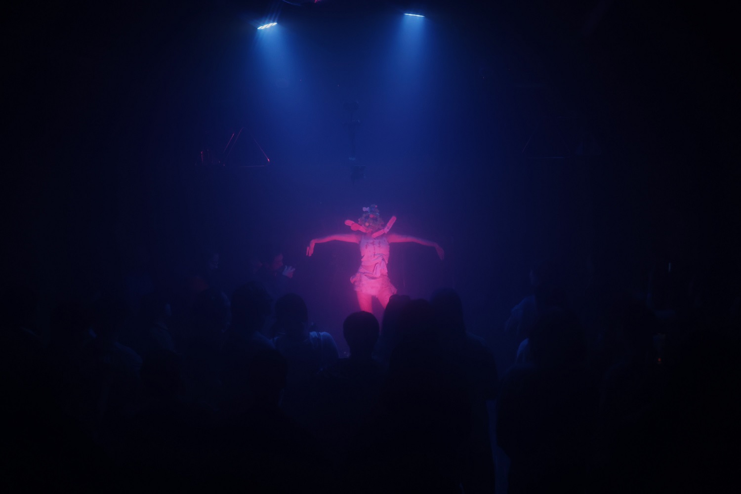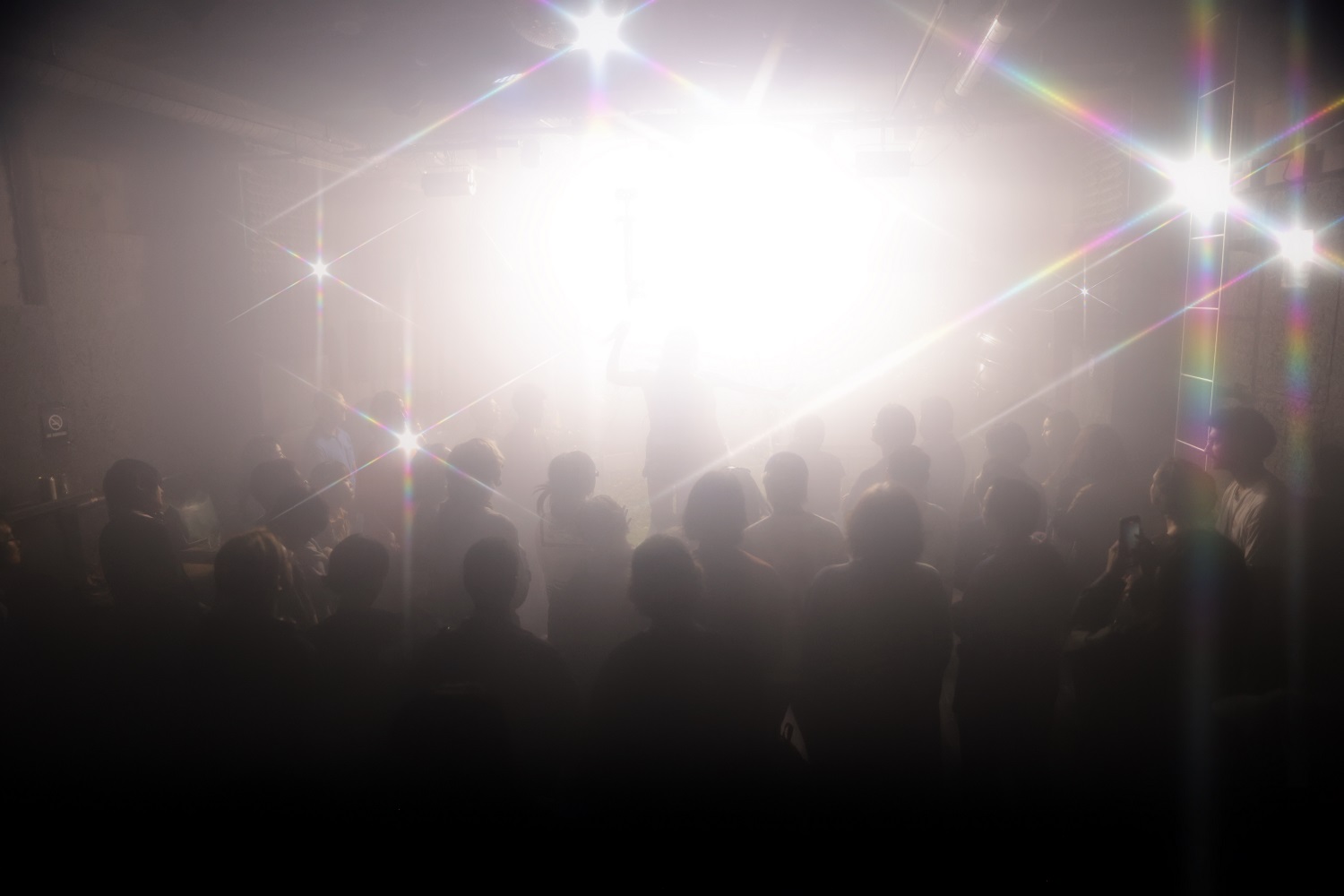 後半にはCVN、Princess Ketamineとの共作曲「Hikari」や筆者が『Euphoria』収録曲でも殊更に愛聴しているナンバー「246」がプレイされ、観客はおのずとNTsKiと虹賀を囲むようにステージへ近づいていく。全編を通してレフトフィールドなハウス・ミュージックやキッチュで楽しげなUKベース・ミュージックに着想を得たトラックが心地よい。没入することも、ただ踊って楽しむことも、観客各々の感覚に委ねられている。圧倒的な表現を振りかざす力強いライブアクトとは一線を画す、たおやかな表現だ。