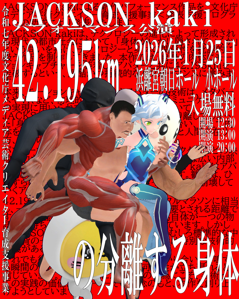 JACKSON kakiによる新作パフォーマンス作品を、文化庁メディア芸術クリエイター育成支援事業の助成により発表いたします。