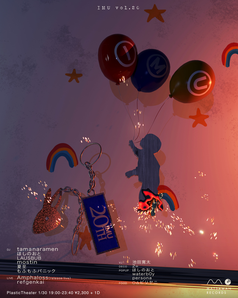札幌ローカルからはLAUSBUBがDJセットで出演するほか、mostin、夏至、そしてもふもふパニックといった〈imu〉レギュラーともいえるメンバーが揃う。また、Amphaloss.が一夜限りの特別なリリース・ライブセットを披露する。