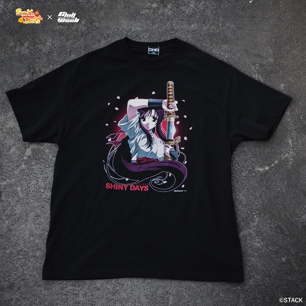 Short sleeve tee “SHINY DAYS”は、スピンオフ作品である『SUMMER DAYS』のリメイク作となる『SHINY DAYS』より、居合の達人である桂言葉が刀を握ったイラストをメイングラフィックに採用。