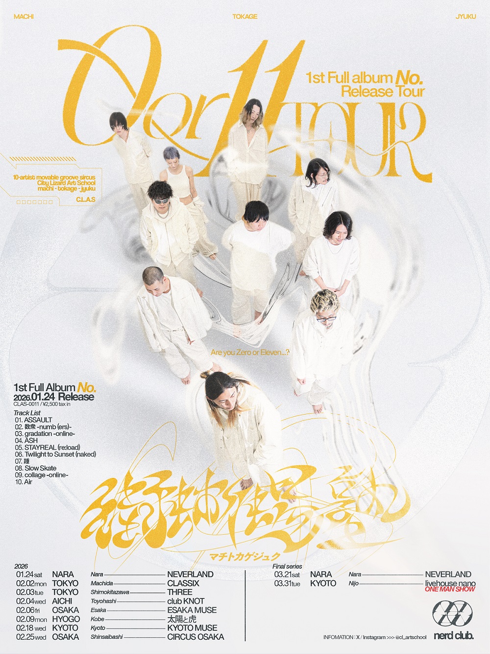 また、1月24日に奈良NEVERLANDで開催される「nerd club vol.5」を皮切りに、東名阪に加え関西2ヶ所を巡るリリースツアー「0 or 11 Tour」を敢行予定。本ツアーの最終日には、京都livehouse nanoにてワンマンライブが開催される。