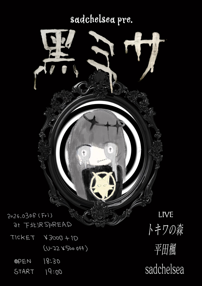 ナイトメアポップを標榜し活動しているバンド sadchelsea が、2026年3月6日に下北沢SPREADにて自主企画「黑ミサ」を開催。