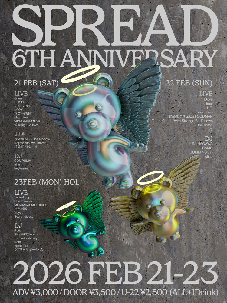 東京・下北沢のライブ/クラブスペース「SPREAD」が2026年2月21日(土)〜23日(月・祝)の3日間、「SPREAD 6th ANNIVERSARY」を開催。