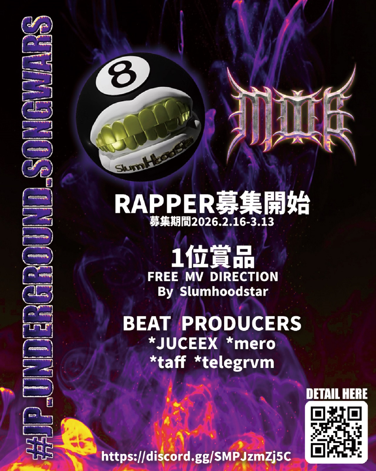 勝者にはMV制作サポート アンダーグラウンドヒップホップアーティストを発掘している配信者・dominguapが、1月25日より賞品付きの新人発掘企画 「 #JP_UNDERGROUND_SONGWARS 」 をスタート。 優勝者には映像制作技術に定評のあるSlumhoodstarによってMV制作、公開がプレゼントされる。 今回の企画では、新人ラッパーたちが多数のビートから自由に選び、自身のスキルと表現を披露する。ラッパーたちの応募動画は X や TikTok上で #JP_UNDERGROUND_SONGWARS のタグと共に公開され、シーンの新たな才能を見つけ出す場となる。 参加希望のラッパー、プロデューサーは、dominguapの Discordコミュニティ内で募集要項を確認可能。興味のあるアーティストはぜひチェックしてほしい、とのこと。 – ・現在はプロデューサーの募集期間が始まっており、Glo, Rage, Jerk, Pluggのビートを募集している。 ・プロデューサー募集期間1月25日(日)〜2月14日(土)23:59まで ・ラッパー一次審査開始 2月16日(月) – 3月13日(金)23:59