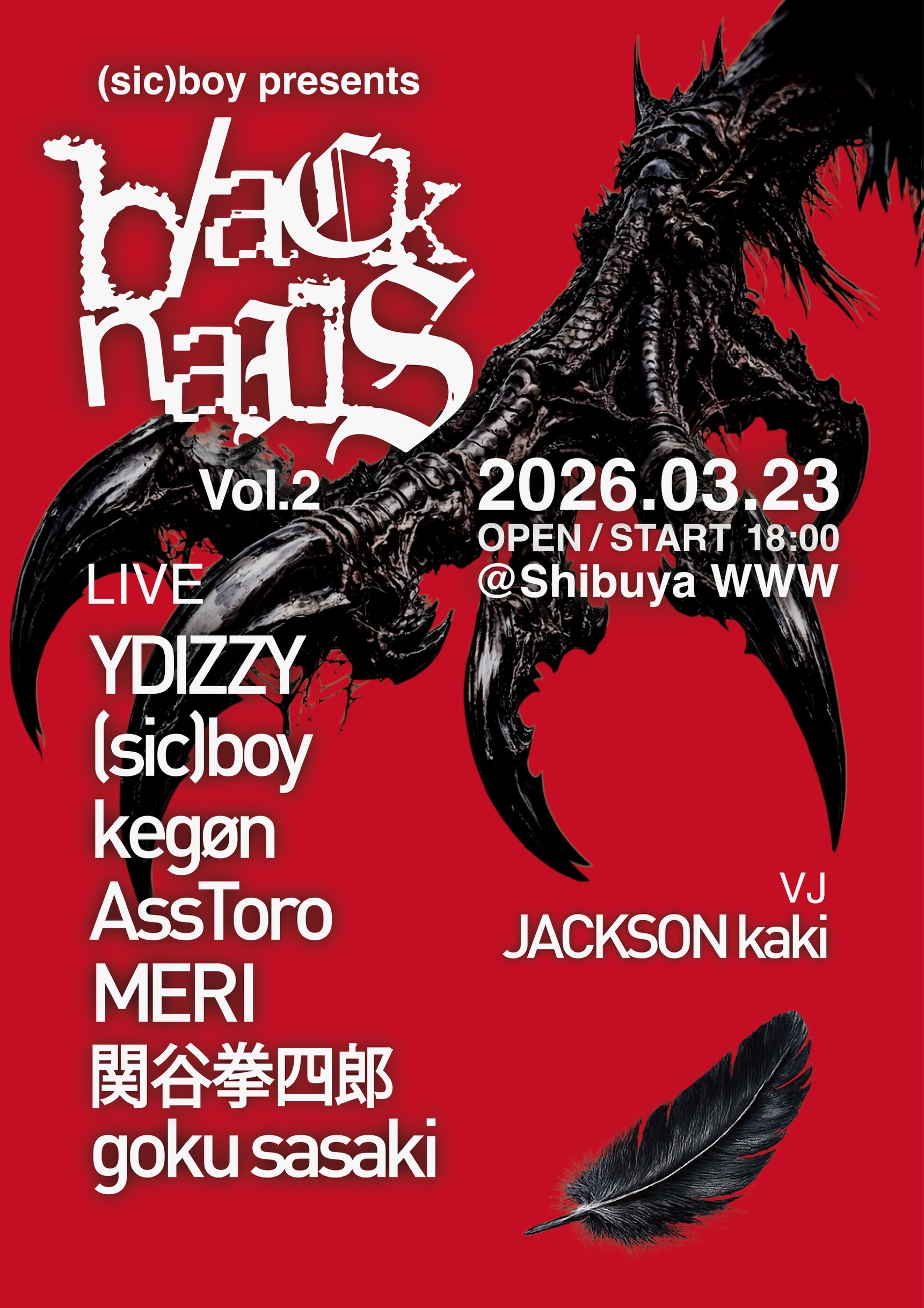 (sic)boyが昨年よりスタートした自身初主催のイベント「blacknails vol.2」が3月23日に開催、本日ラインナップが公開。