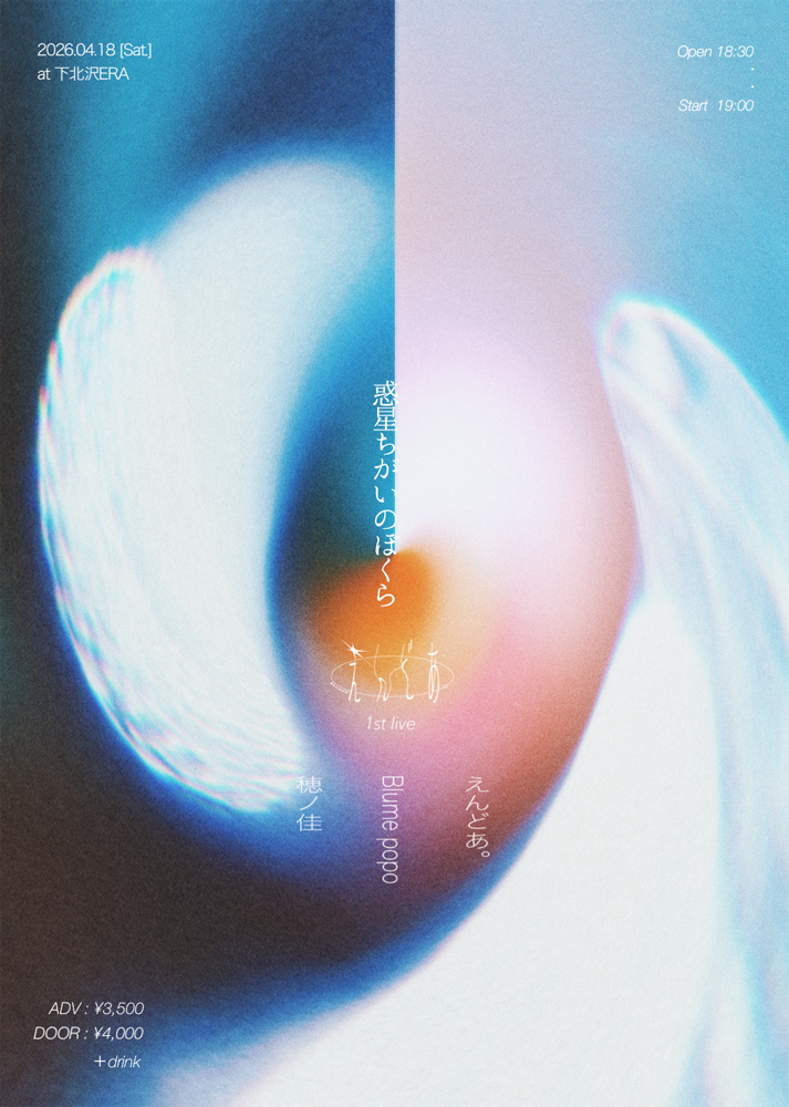 4月18日には、1st Live「惑星ちがいのぼくら」を下北沢ERAにて開催。ゲストにBlume popo、穂ノ佳を迎えた3マン公演。チケットは3月14日(土)10時より一般発売開始。えんどあ。の新たな始まりを、ぜひその目で確かめてほしい、とのこと。